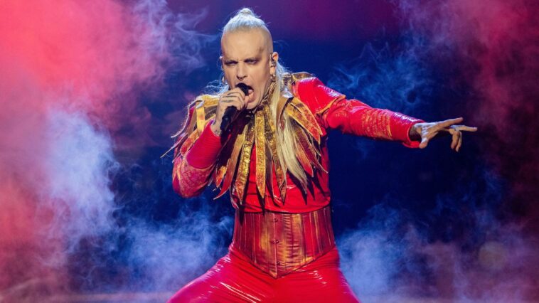 Finnland: Die wildeste Bühnenshow bietet Brachial-Rapper Käärijä. Mit seinem durchgeknallten Party-Kracher “Cha Cha Cha” sprengt er gängige Song-Strukturen und vereint Techno, Hip-Hop und Festzelt-Mucke auf originelle und gelungene Weise. Bewertung: 10 Punkte